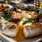 A festive Brie Cheese Wreath combining creamy brie, flaky puff pastry, and savory herbs, perfect for holiday gatherings and appetizers.