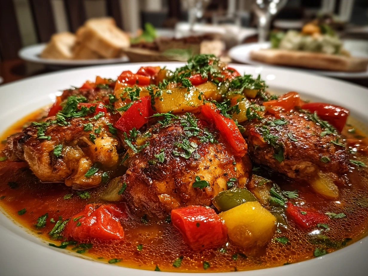Chicken Cacciatore is a classic Italian dish featuring tender chicken simmered in a savory tomato sauce with bell peppers, onions, and herbs for a comforting and flavorful meal.