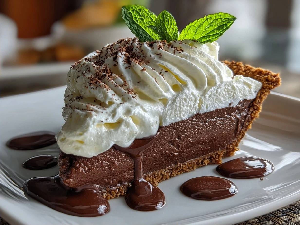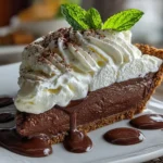 This Chocolate Mint Pie features a rich chocolate filling enhanced with refreshing mint flavor, nestled in a crisp chocolate cookie crust—a perfect cool and creamy dessert.