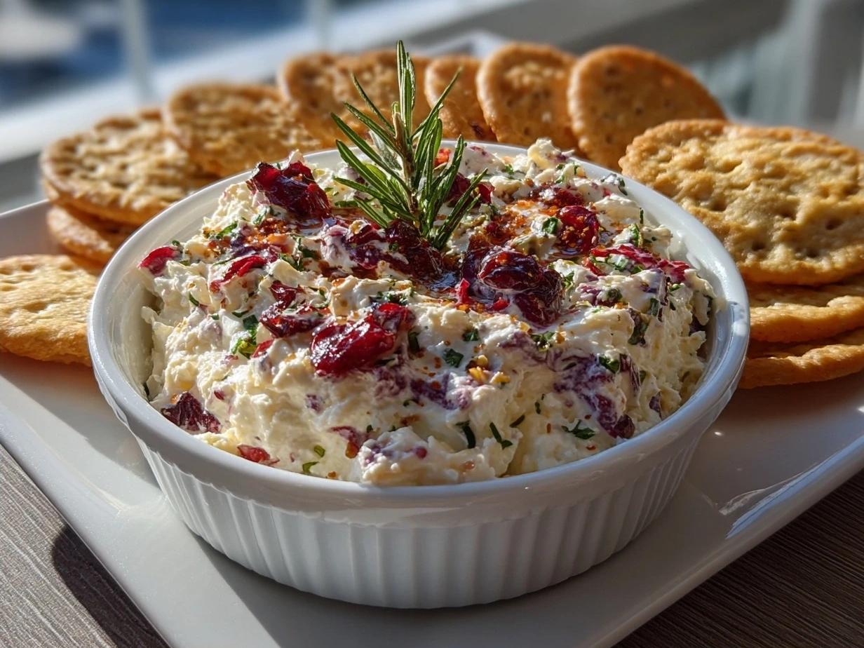A zesty and creamy dip combining tangy cranberries and spicy jalapenos, perfect for parties and snack time.