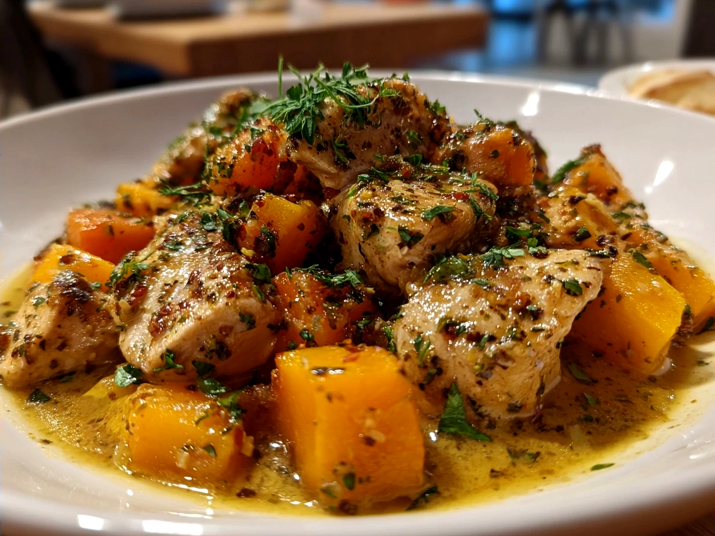 This cozy crockpot recipe combines tender chicken with sweet maple and tangy Dijon mustard, perfectly complemented by roasted butternut squash for a delicious and comforting meal.