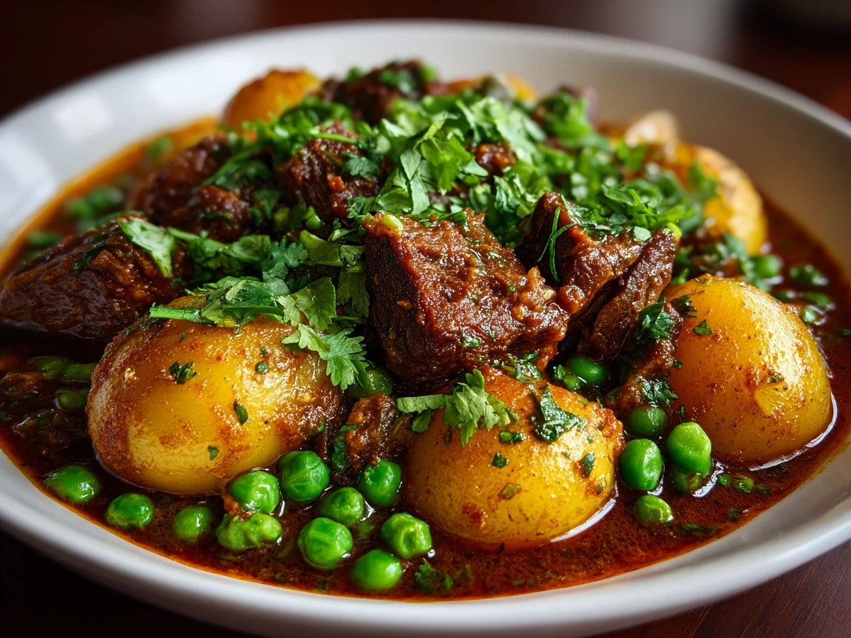A comforting and flavorful Crockpot Potato Pea Curry that combines tender potatoes and sweet peas in a rich, spiced tomato sauce, perfect for an easy and wholesome meal.