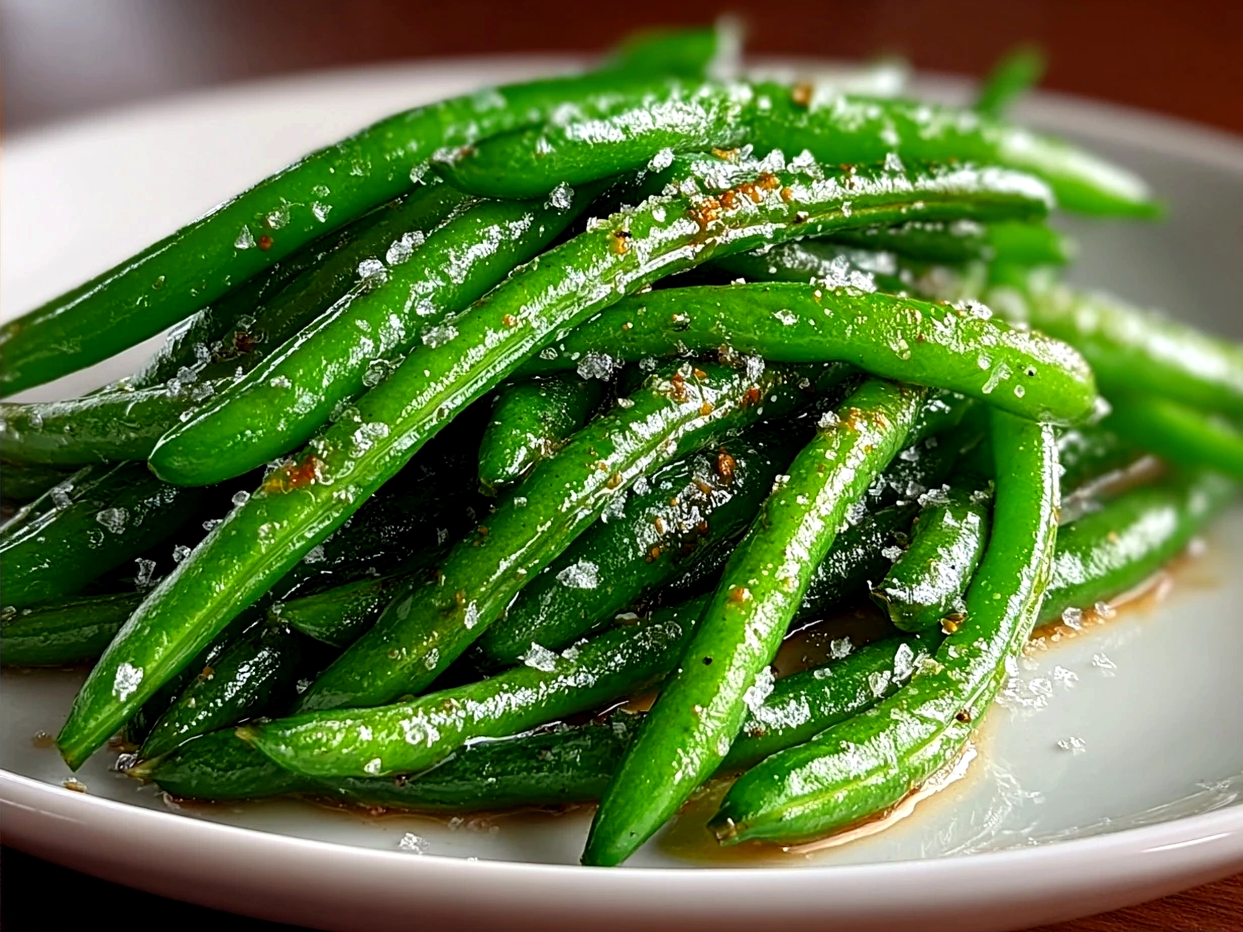Fresh green beans sautéed to tender crispness with garlic and olive oil, making a simple and healthy side dish perfect for any meal.