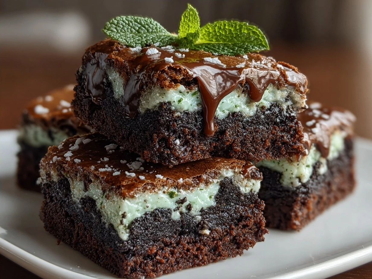 Indulge in rich, fudgy brownies layered with creamy mint and crunchy Oreo cookies for a delightful twist on a classic dessert. Perfect for mint lovers seeking a decadent treat.