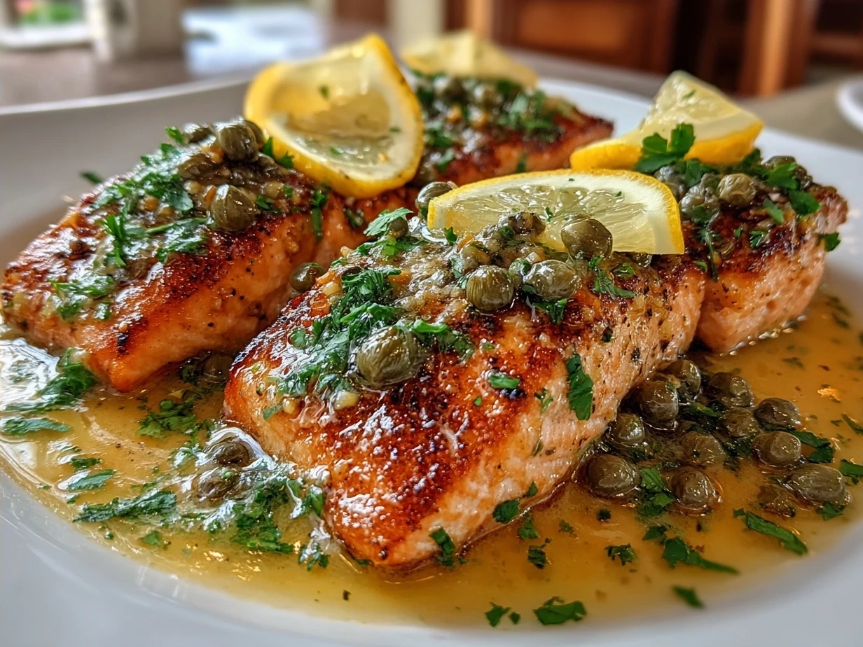 Salmon Piccata is a light and flavorful dish featuring pan-seared salmon in a tangy lemon-caper sauce, perfect for a quick and elegant dinner.