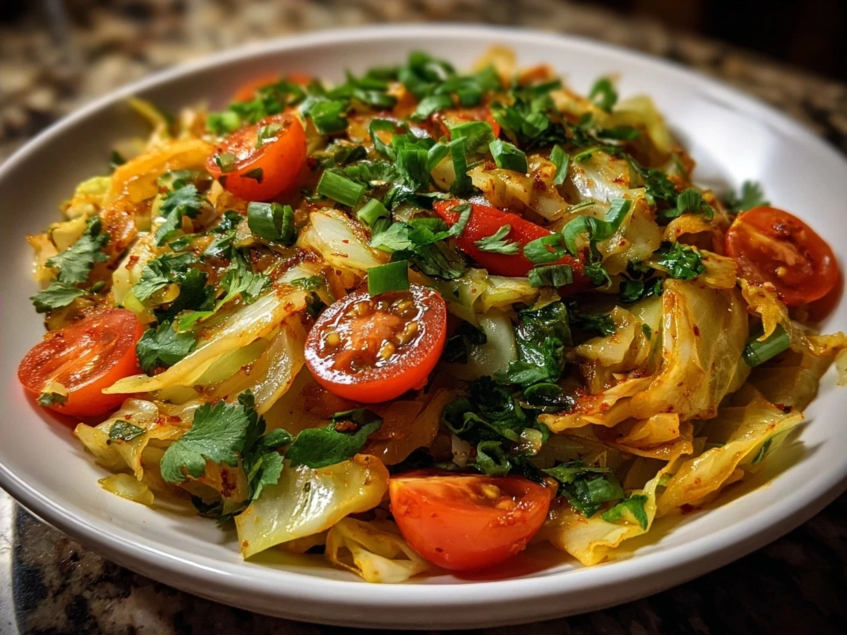 A flavorful and healthy Tex Mex Cabbage Skillet combining crunchy cabbage with zesty spices and fresh vegetables for a quick and satisfying meal.